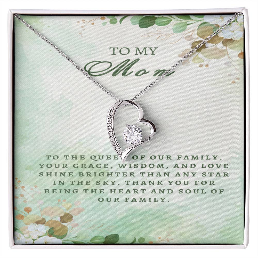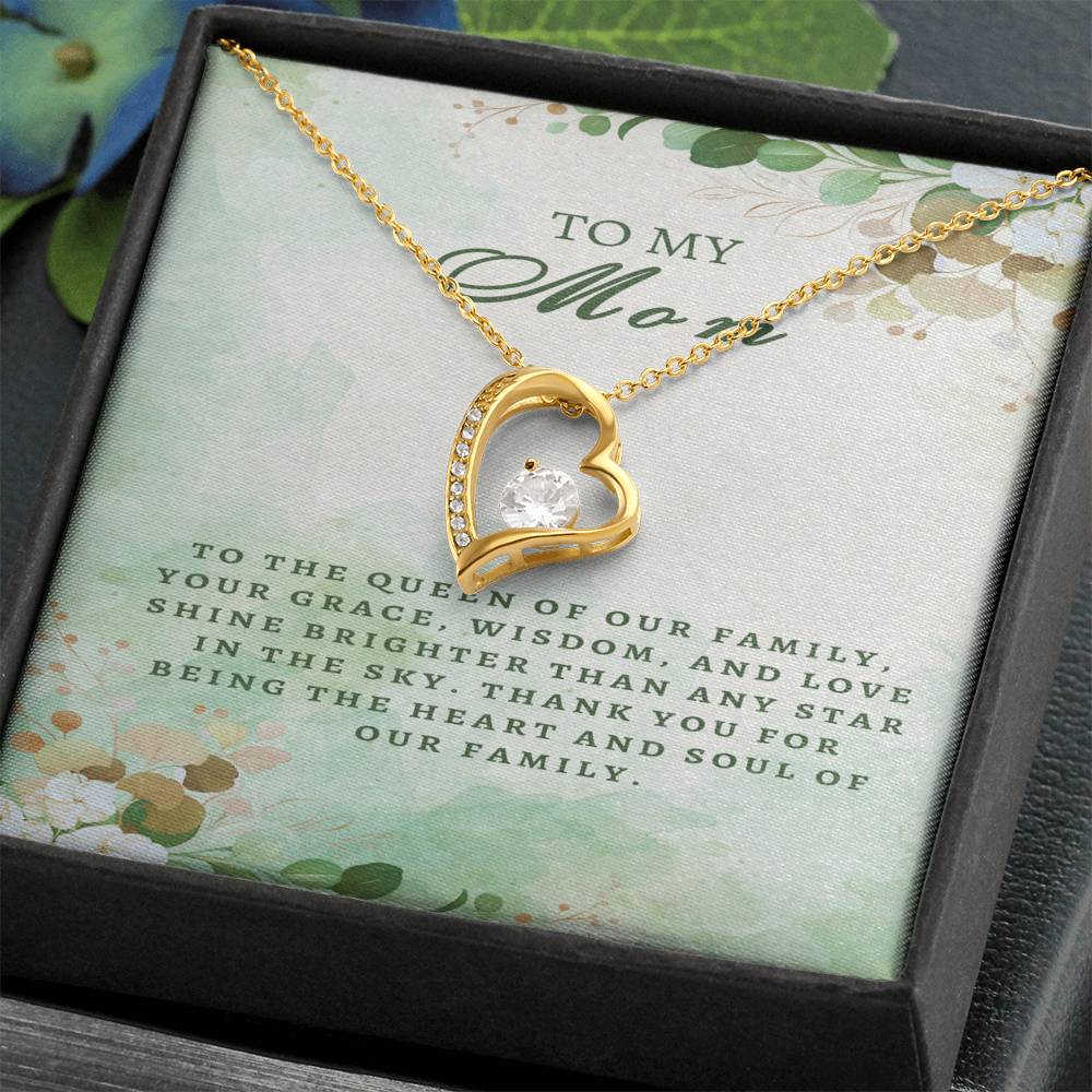 Honor the queen of your family with our Regal Tribute Necklace for Mom. Radiating with elegance and adorned with heartfelt appreciation, this necklace is a symbol of her grace, wisdom, and boundless love. Each time she wears it, she'll be reminded of the profound impact she has on your family's life. Let her know she's cherished as the heart and soul of your family. Say 'thank you' in a regal way with this stunning tribute.